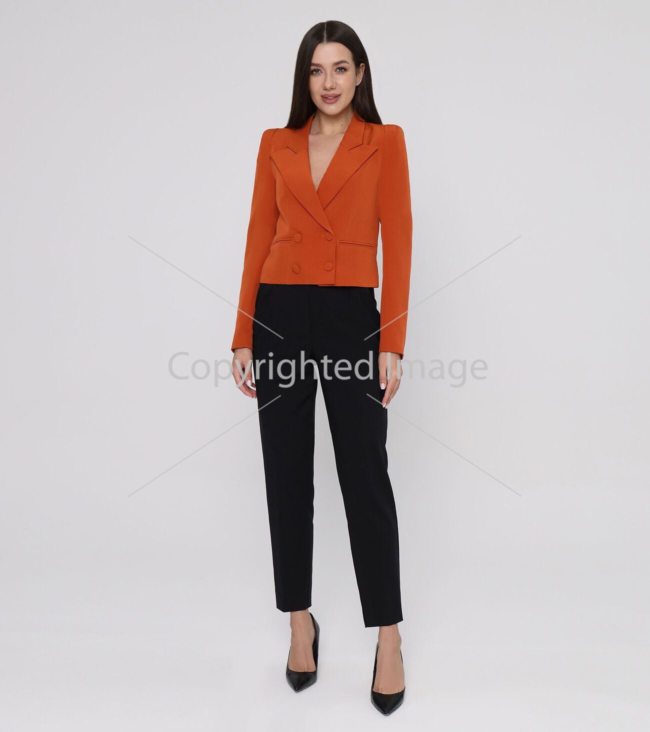 Knitted jacket for women will become the basis of stylish business images. A cropped double-breasted jacket with long sleeves and buttons in two rows will look good in tandem with wide classic trousers. A short jacket can be worn over underwear, or you can also put a top or T-shirt under it. The deep neckline allows you to complement the image with various decorations and accessories. You can order a business jacket for office work, business meetings, attending events, conferences, master classes. A short jacket for women is appropriate even in strict dress codes.Size 42: Product length-47cm, Sleeve length-62cm, Shoulder width-7.5 cm, Chest width-45cm, Bottom width-43cm, Sleeve width-16.5 cm; Size 44: Product length-47cm, Sleeve length-62cm, Shoulder width-7.5 cm, Chest width-47cm, Bottom width-45cm, Sleeve width-17cm; Size 46: Product length-47cm, Sleeve length-62cm, Shoulder width-7.5 cm, Chest width-49cm, Bottom width-47cm, Sleeve width-17.5 cm; Size 48: Product length-48cm, Sleeve length-62cm, Shoulder width-7.5 cm, Chest width-51cm, Bottom width-49cm, Sleeve width-18cm; Size 50: Product length-49cm, Sleeve length-62cm, Shoulder width-7.5 cm, Chest width-53cm, Bottom width-51cm, Sleeve width-18.5 cm;