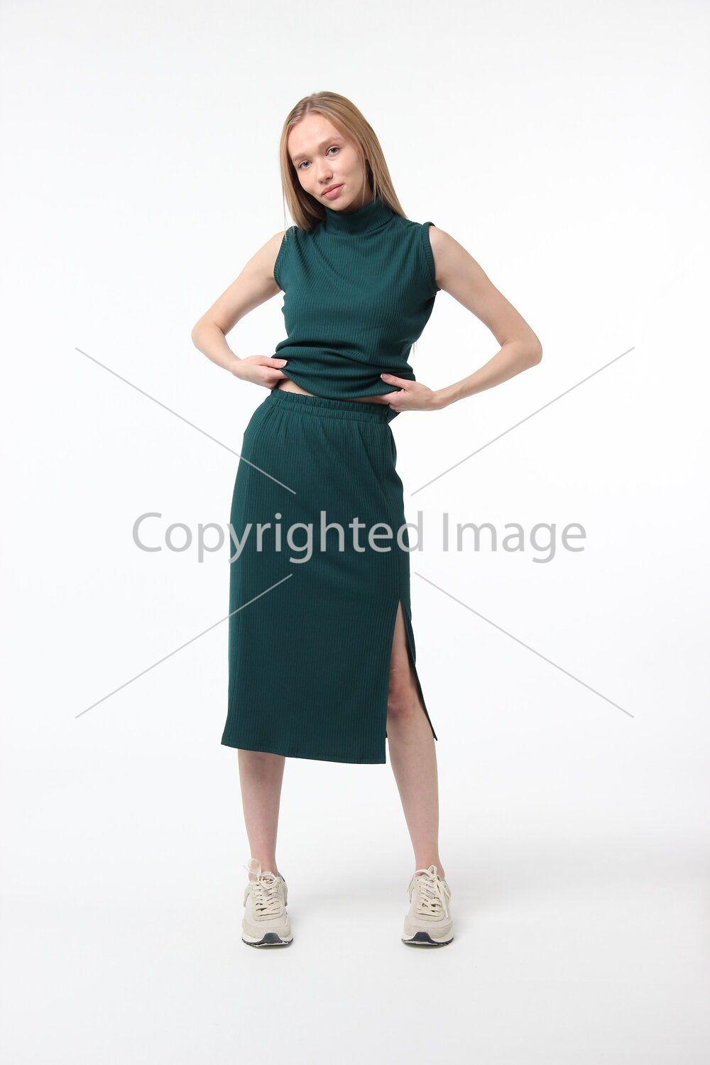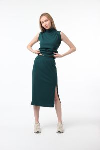 Midi noodle skirt with a slit on one leg. A universal item that should be in the wardrobe of every woman. Calm colors that will suit every moment of your life.
