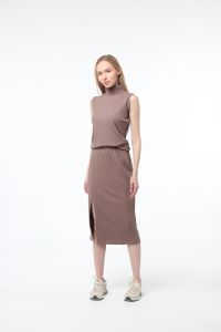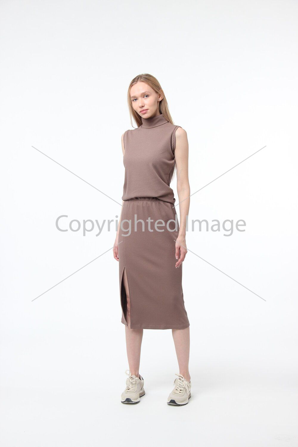 Midi noodle skirt with a slit on one leg. A universal item that should be in the wardrobe of every woman. Calm colors that will suit every moment of your life.