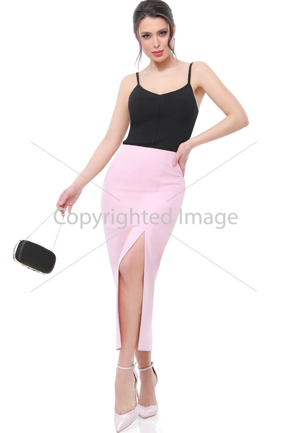 A spectacular midi skirt with a slit is a stylish and seductive model that will not leave anyone indifferent. The high-waisted pencil style gently fits the hips and visually stretches the silhouette. The main accent of the skirt is a bold cut from the hip, which not only adds piquancy to the image, but also turns the product into a hit of the season. Against the background of the classic style of midi length, a bold detail does not look too frank. This allows women of any complexion and any age to choose the right model and feel irresistible and desirable in it. In order for the midi skirt to please you with its beauty and quality for as long as possible, it is recommended to wash it carefully at a temperature of no more than 30 degrees.