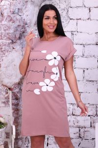 Women's tunic with a delicate 3D print from a solid kulirka, a slightly fitted silhouette model, a rounded neck is treated with a label, a lowered armhole on the cuff with a lapel. Casual, cozy, pleasant to the body tunic is an indispensable thing for home and walking.