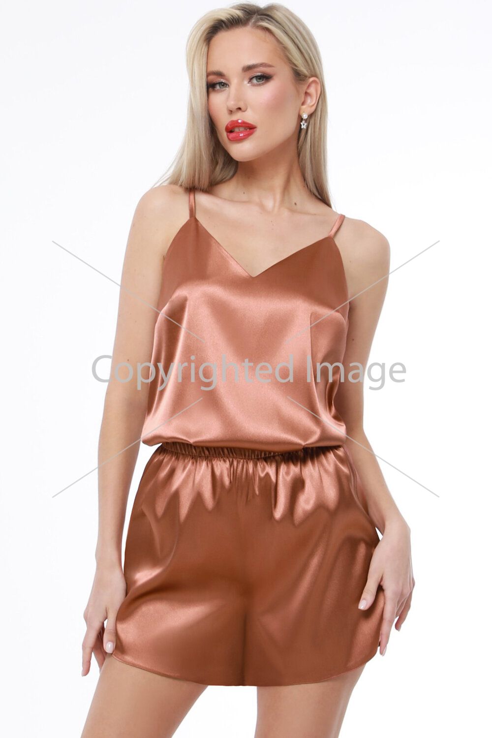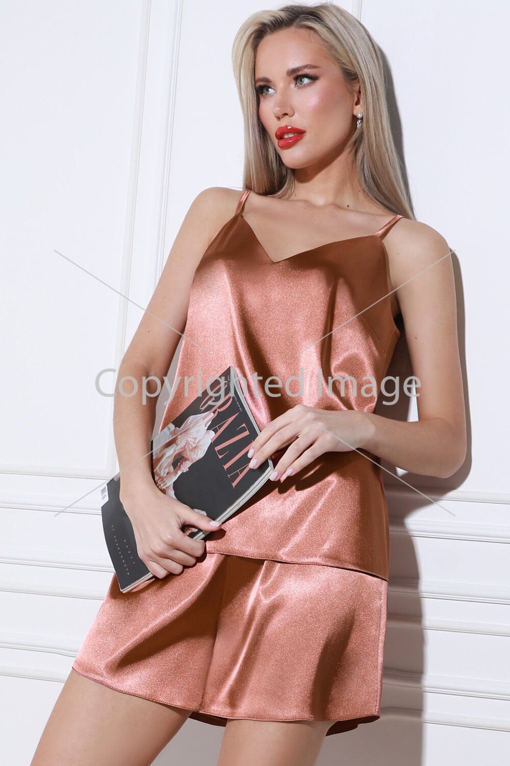 Pajamas with shorts are a comfortable and stylish element of the home wardrobe, suitable for any time of the year. Made of high-quality crepe satin, it is soft, light and has a pleasant texture to the touch. Crepe satin is known for its smoothness and light shine, which gives the pajamas an elegant look and ensures a comfortable sleep. To care for the product, gentle washing at a temperature of 30 degrees is recommended. This washing mode helps to preserve the original appearance and quality of the fabric, preventing its deformation and wear. This approach to care ensures the durability of pajamas, allowing them to maintain their aesthetic and functional properties for a long time.