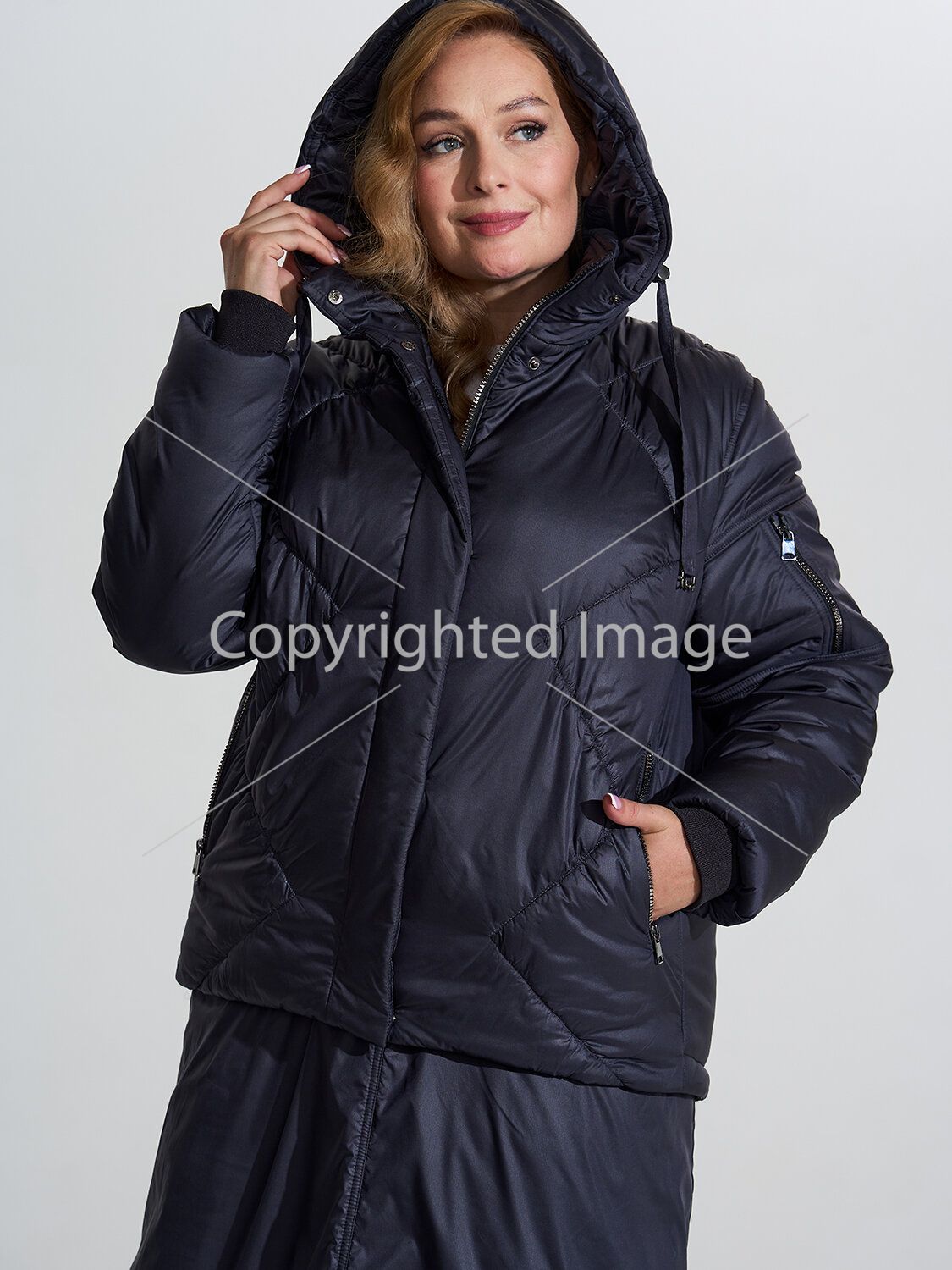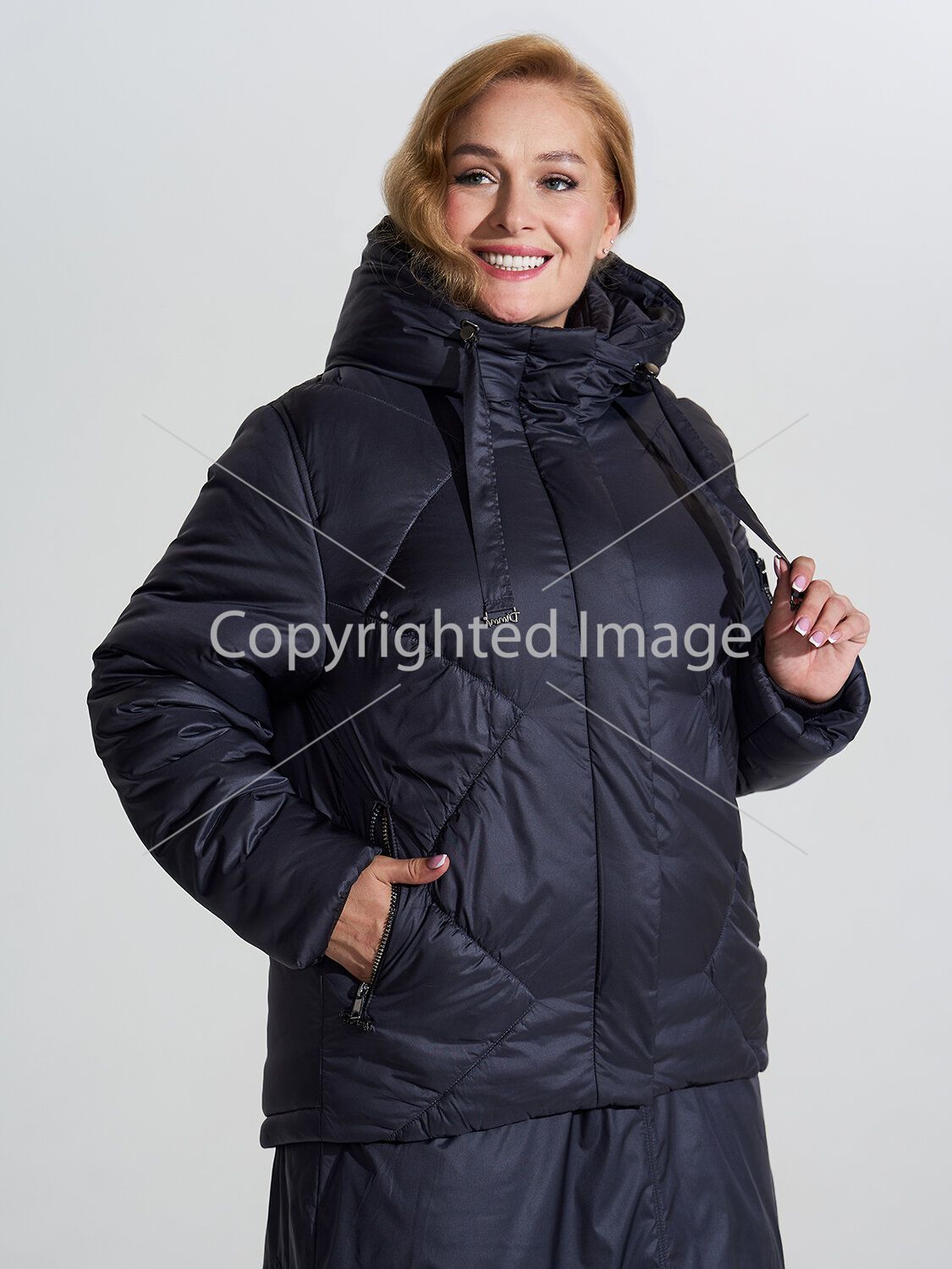 Short warm winter jacket from the Russian manufacturer D'imma Fashion Studio. Perfectly adjusted design with a slightly elongated back, drawstring at the bottom. Tractor two-way zipper closure. Pockets on the shelf and an additional pocket on the sleeve are also zipped. The hood is not detachable and is complemented by a stand-up collar for thermal protection. Sleeves with internal knitted cuffs. Elastic assembly on the shelf contributes to a perfect fit on any figure. The jacket is made of fabric with a water-repellent impregnation, which will greatly help in rainy and windy weather. Thanks to the latest TherMmax insulation, the product will be very warm and light. Its strengths are as follows: high heat and air conductivity, low specific gravity, good elasticity, hygiene, elasticity, strength, durability, shape stability, easy washing and fast drying. This model of jacket is combined with the insulated skirt "Vilma", made of the same fabric. The printed lining perfectly lets in air and moisture. Inside pocket. Wide size range, available in large sizes.