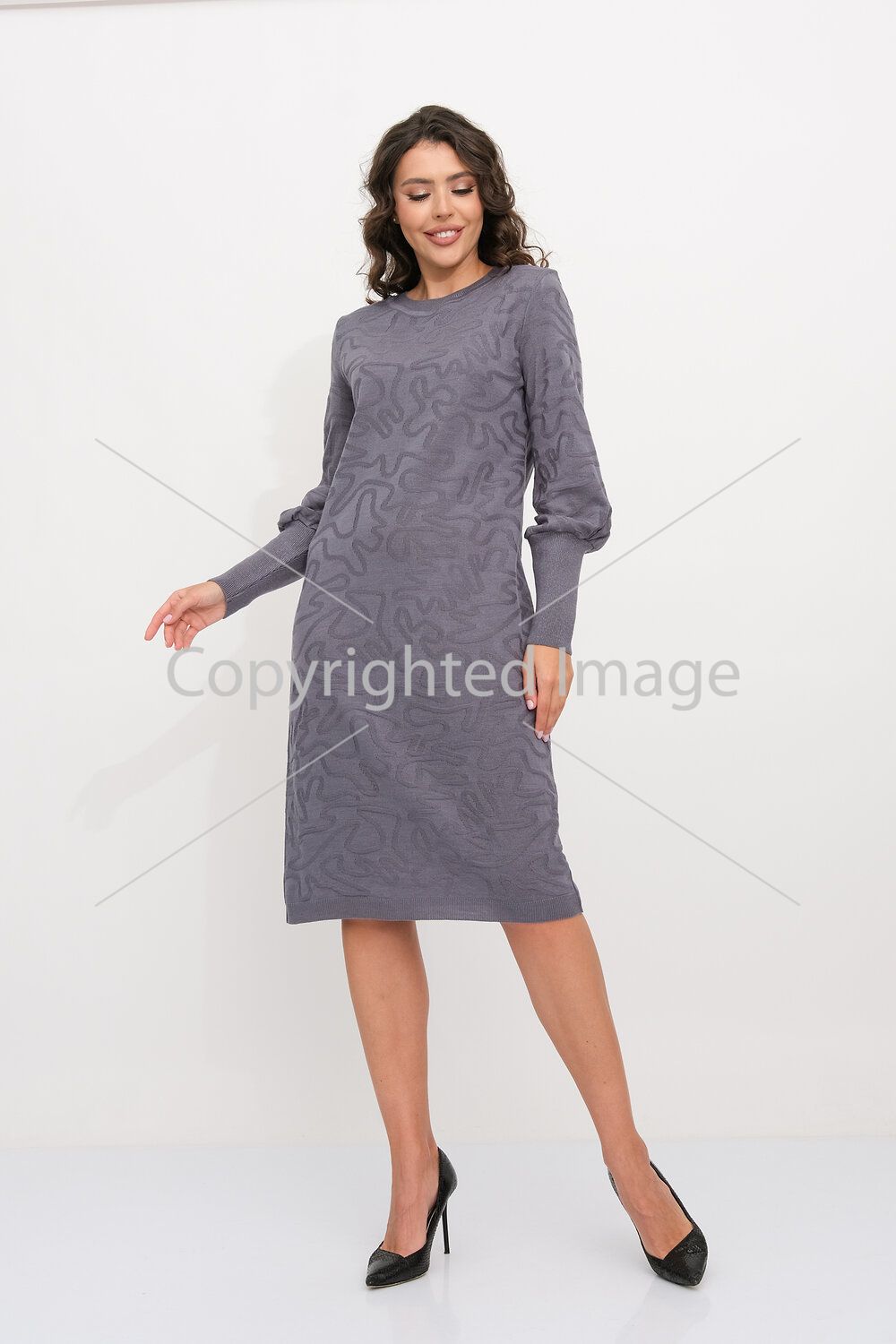 Women's knitted dress with long sleeves and round neck is one of the most comfortable and necessary things in the wardrobe for the winter and spring season. The material with the addition of wool will keep you warm on cold days. A straight cut with textured knitting and a high sleeve cuff will add to your elegance and charm.